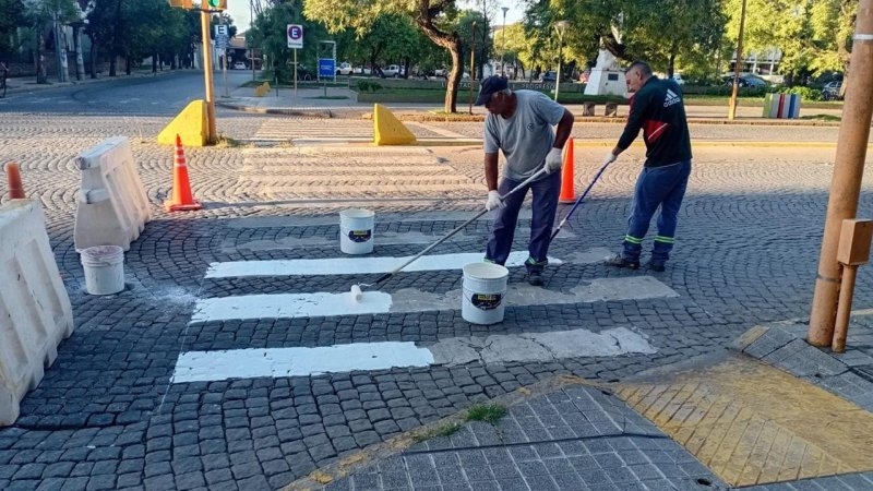 Los trabajos comprenden la demarcación de sendas peatonales en el sector comprendido entre Bv. Buenos Aires y J. B. Justo y Av. Garibaldi e Hipólito Yrigoyen, entre Bv. 25 de Mayo y Bv. 9 de julio. Para ello, en los últimos días comenzaron los trabajos de pintado y demarcación en Bv. 25 de Mayo entre Pasaje Champagnat y Mitre y una vez que concluyan ese sector continuarán el trabajo hasta completar todo el perímetro.