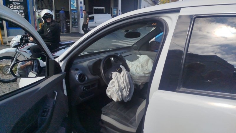 Se hace presente servicio de emergencias Cruz Verde, trasladando a la mujer del Totota Ethios al Sanatorio San Justo, donde se le diagnostica traumatismo de cráneo leve.
