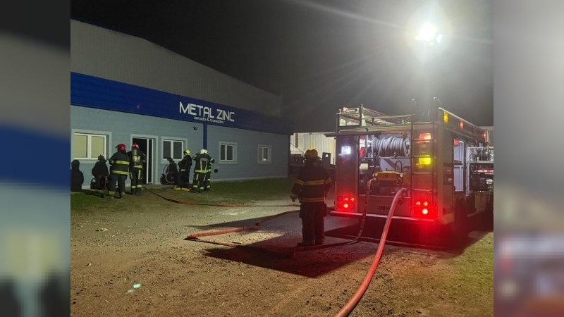 Minutos antes de las 05:00 de la mañana, los Bomberos Voluntarios de San Francisco fueron convocados al Parque Industrial de la ciudad por un incendio declarado en la planta Metal Zinc.
