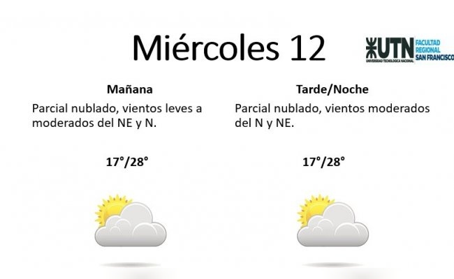 El miércoles se presentará "parcial nublado, con vientos leves a moderados del NE y N". La mínima pronosticada es de 17° y la máxima de 28°.