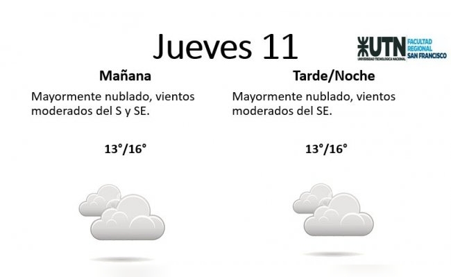 Mientras que para el 11 de abril la mañana estará mayormente nublada, con vientos moderados desde el sur y el sureste, con una máxima de 16 y una mínima de 13 grados. Mientras que para la tarde/noche se mantendrá el cielo nublado, con vientos moderados del sureste.