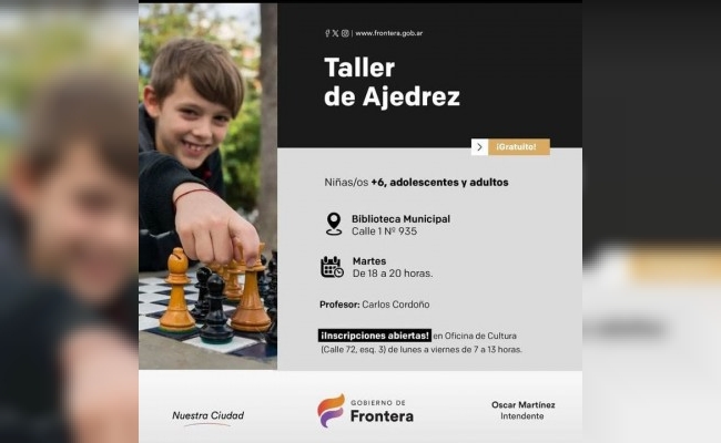 Dirigido a niñas/os de +16 años, adolescentes y adultos. Se llevará a cabo en la Biblioteca Municipal, ubicada en calle 1 Nº 935, los días martes de 18 a 20hs. A cargo del profesor Carlos Cardoño.