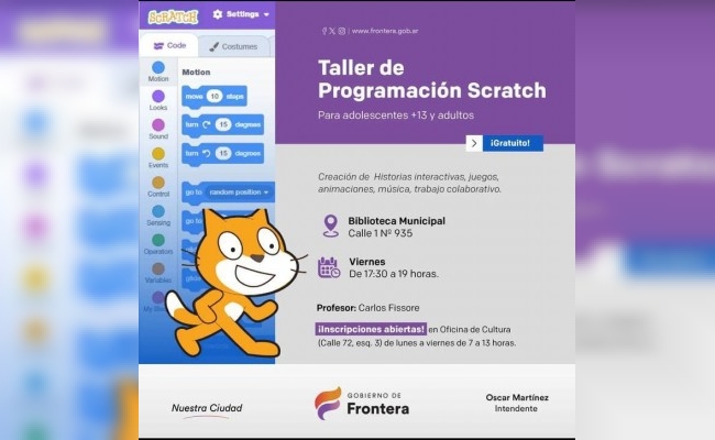 Dirigido a adolescentes de +13 años y adultos. Se llevará a cabo en la Biblioteca Municipal, ubicada en calle 1 Nº 935, los días viernes de 17:30 a 19hs. A cargo del profesor Carlos Fissore.