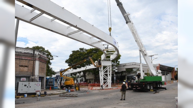 Se completó el armado de la última etapa de la estructura que sostiene el paso peatonal y bicisenda en altura