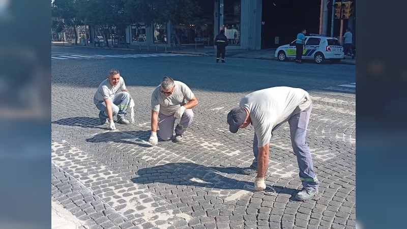 Los trabajos comprenden la demarcación de sendas peatonales por bulevar 25 de Mayo hasta bulevar Buenos Aires.