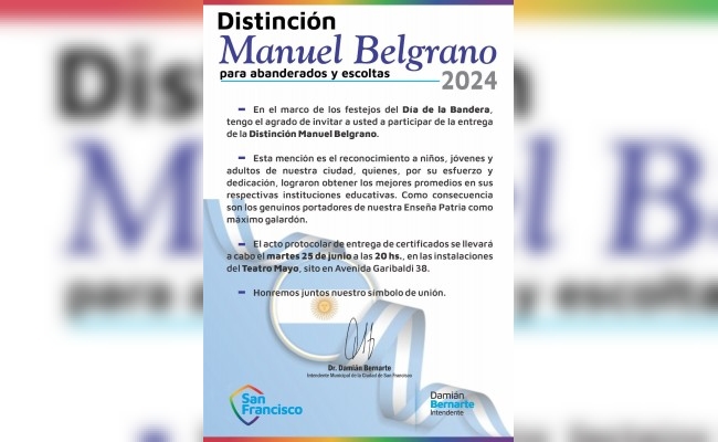 Escuelas de nuestra ciudad recibirán la Distinción "Manuel Belgrano"