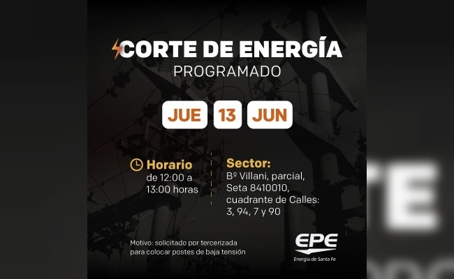 Cortes de energía programados para este jueves y viernes