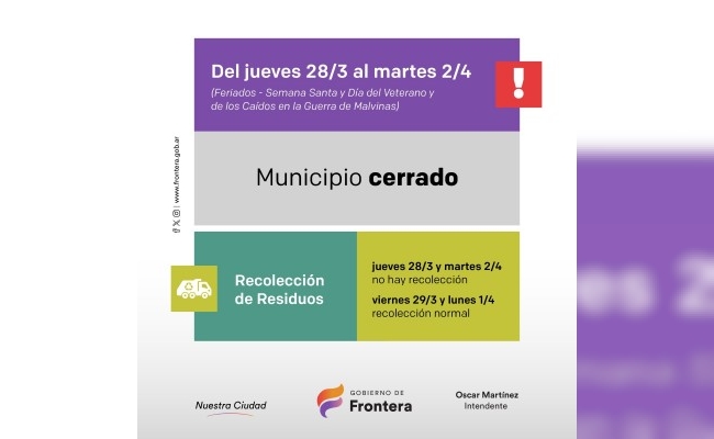 Municipalidad de Frontera permanecerá cerrada el fin de semana largo