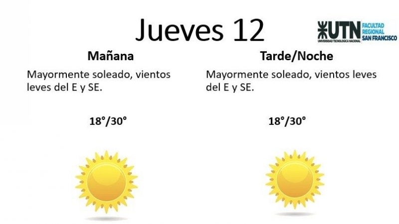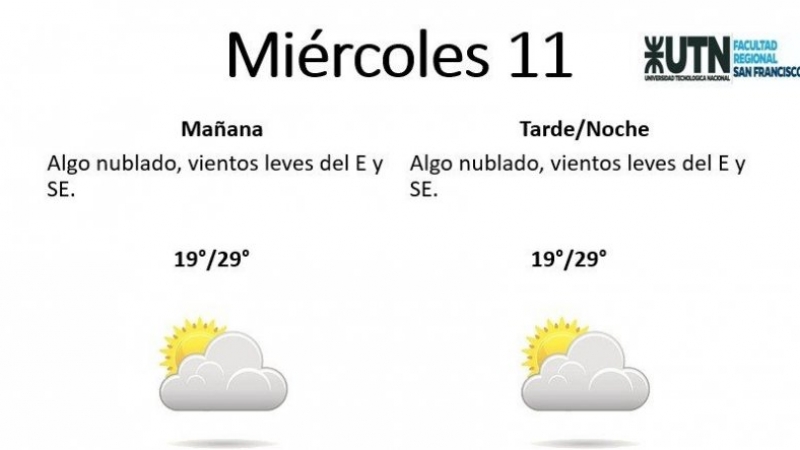 El jueves, por su parte, estará "mayormente soleado, con vientos leves del E y SE". La temperatura mínima será de 18° y la máxima de 30°.