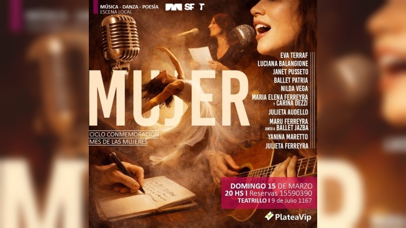 Domingo 15, 20 hs: En el marco del Mes de la Mujer se presentará en el Teatrillo el espectáculo “Mujer”, una propuesta que reunirá a destacadas artistas de San Francisco en una velada donde la música, la danza y la palabra se combinará para celebrar el talento femenino local.