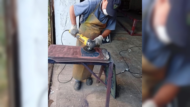 Asimismo, se realiza la recuperación de los carteles nomencladores que habían sido reemplazados hace algunos días en barrio Jardín y en el perímetro que abarca avenida Juan B. Justo y avenida Caseros. Las mismas son sometidas a una tarea de limpieza, colocación de antióxido, pintado y posterior rotulación. Una vez rotuladas se arman los nomencladores con sus respectivas flechas y se procede a su colocación.