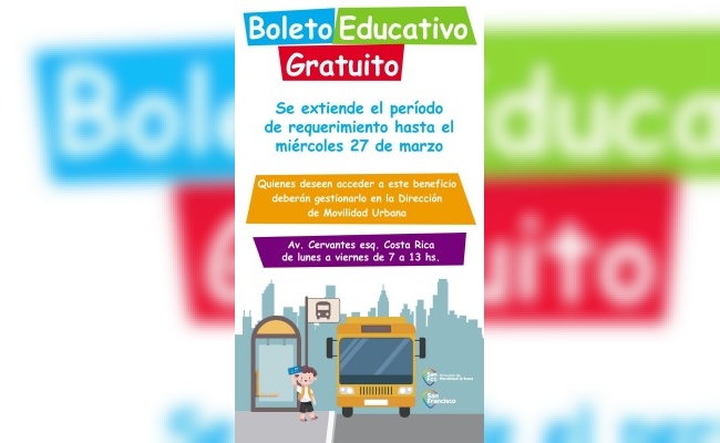 Boleto Educativo Gratuito: se extiende el período de requerimiento para su uso en la ciudad