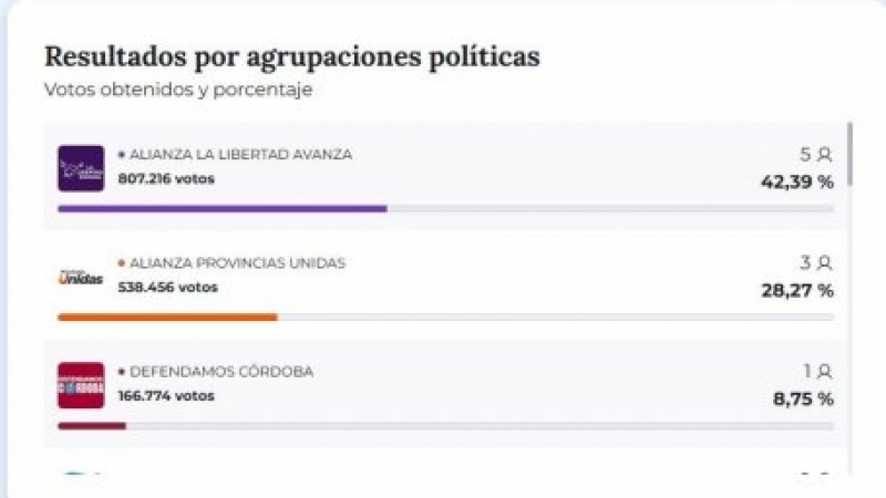 La Libertad Avanza se impuso en 52 ciudades de Córdoba y Provincias Unidas en 6