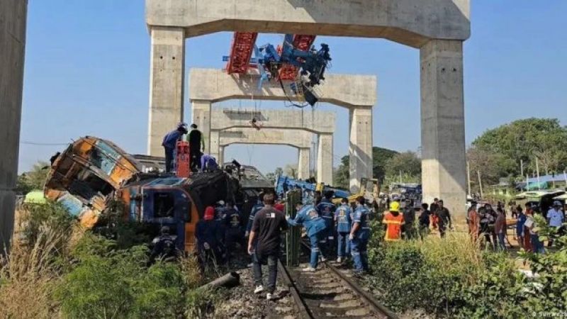 Tragedia en Tailandia: una grúa cayó sobre un tren y dejó al menos 30 muertos y 67 heridos