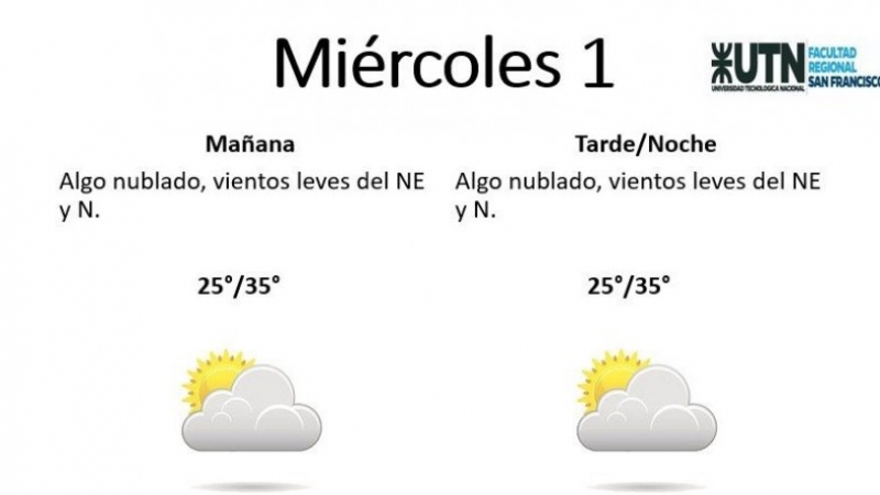 El miércoles se presentará "algo nublado, con vientos leves del NE y N". La mínima pronosticada es de 25° y la máxima de 35°.