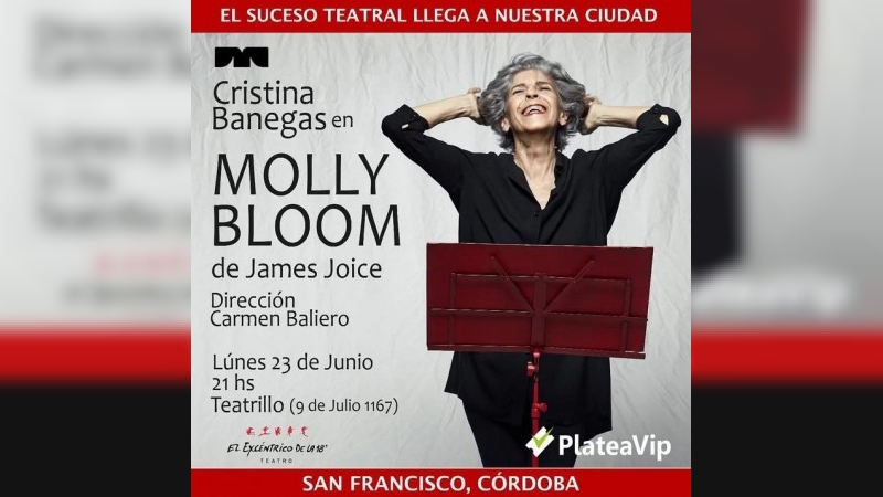 La obra de teatro "Molly Bloom" protagonizada por Cristina Banegas y dirigida por Carmen Baliero es un unipersonal basado en el monólogo final de James Joyce en "Ulises". La obra explora el flujo de pensamientos y recuerdos de Molly Bloom en una noche de insomnio. La obra ha recibido críticas positivas por la interpretación de Banegas y la dirección de Baliero. La Revista El Inconsciente dice que es conmovedor y la crítica de La Nación llama a la obra un "brillante ritual ancestral". "Molly Bloom" es una obra teatral que ofrece una experiencia intensa e íntima, con una actuación magistral de Cristina Banegas y una dirección que potencia la esencia del texto de James Joyce.