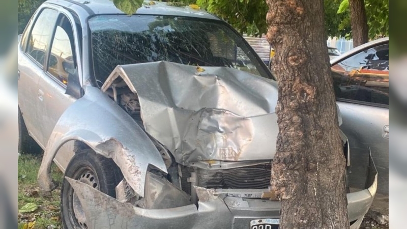 Chocó contra un árbol para evitar que le roben el auto