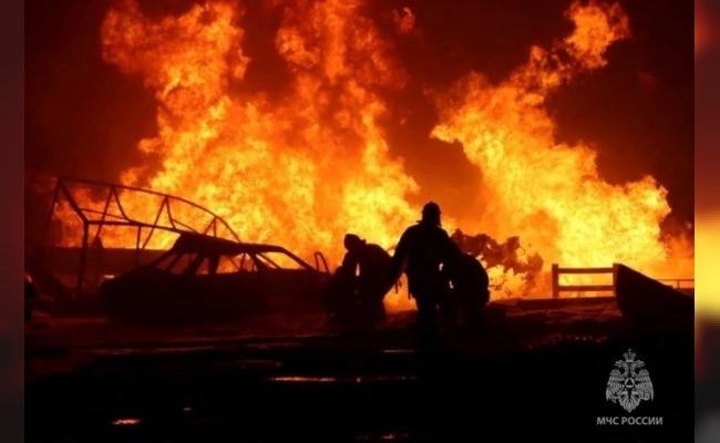 Feroz incendio en depósito petrolero de Rusia tras el ataque de drones ucranianos